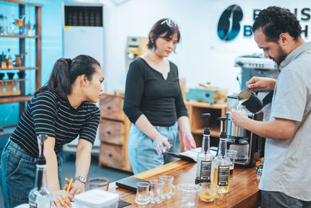 Learning coffee knowledge goes beyond brewing—it begins with understanding its rich history and origins, shaping the way we value every bean. In training, you’ll explore the fundamentals of proper roasting, discovering how roast levels influence flavor, aroma, and body. You’ll also gain essential insight into grind size selection, mastering how each grind perfectly matches specific coffee equipment—from fine espresso extractions to coarse French press brews. This knowledge ensures consistency, quality, and a deeper appreciation for the craft, allowing you to create coffee that truly stands out.